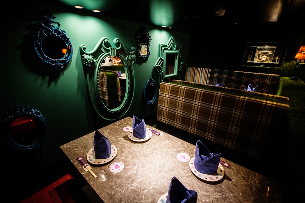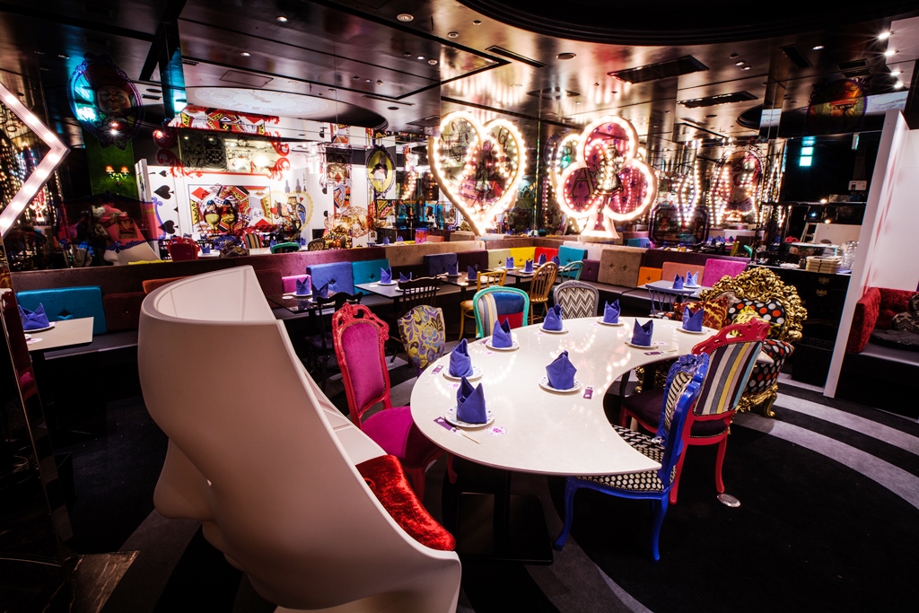 今回のビュッフェの会場となるお店、『幻想の国のアリス』は、そのネーミングどおり「ルイス・キャロル」が描く“アリスの世界”に迷い込んだかのようなフォトジェニック空間。