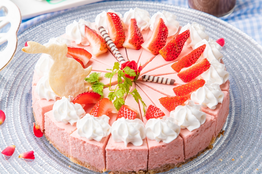 思わず「かわいすぎるやろー」とツッコミをいれたくなるウサギの耳つきロールケーキ。ジューシーないちごの果実が入って、爽やかな甘さです。