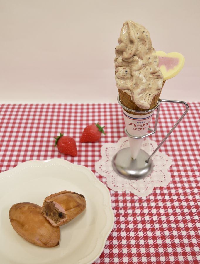 横浜の有名銘菓の『ありあけハーバースタジオ』(2階)からは、2種類のベリーを贅沢に使った「焼きたてベリーベリーハーバー」220円と、「ベリーベリーハーバーソフト」660円が登場。1日数量限定のハーバースタジオのオリジナルスイーツです。