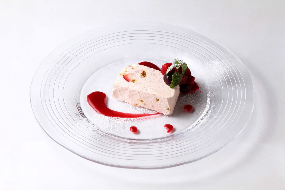 『アンティーカ ピッツェリアダ ミケーレ横浜』(2階)は、イタリア全土で知られるシチリア発祥の氷菓子「苺のカッサータ」700円。生クリームとメレンゲ、アーモンドプラリネ、いちごをあわせたデザートです。