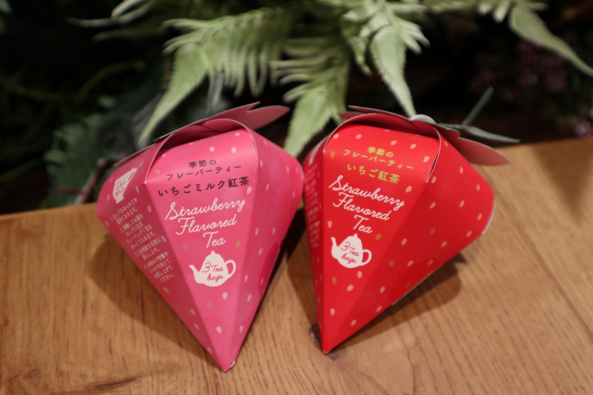 『AINZ&TULPE BEAUTY FACTORY』(2階)は、いちごの形をしたパッケージに、ティーバッグ3包が入った「季節のフレーバーティー」410円。フレーバーは、いちご紅茶といちごミルク紅茶の2種類。なくなり次第終了なので急いで~。
