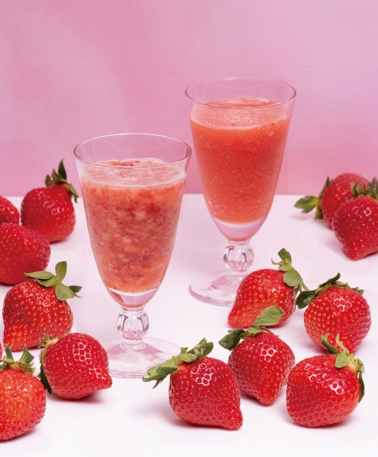 『・500kcal・Truffle Farm』(2階)の「まるでプリンのようなまろやかいちごカクテル」780円は、いちごの香りが広がるまろやかな味わいが特徴。見た目もオシャレでノンアルコールにもできます。