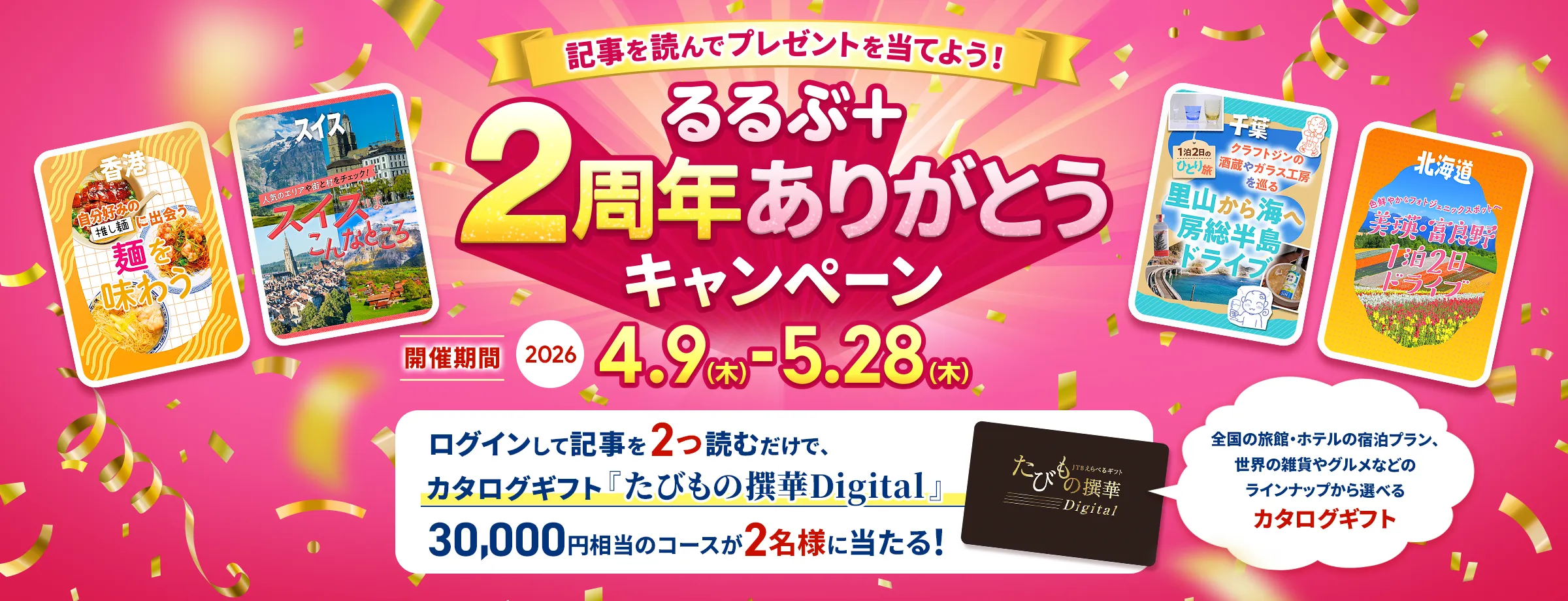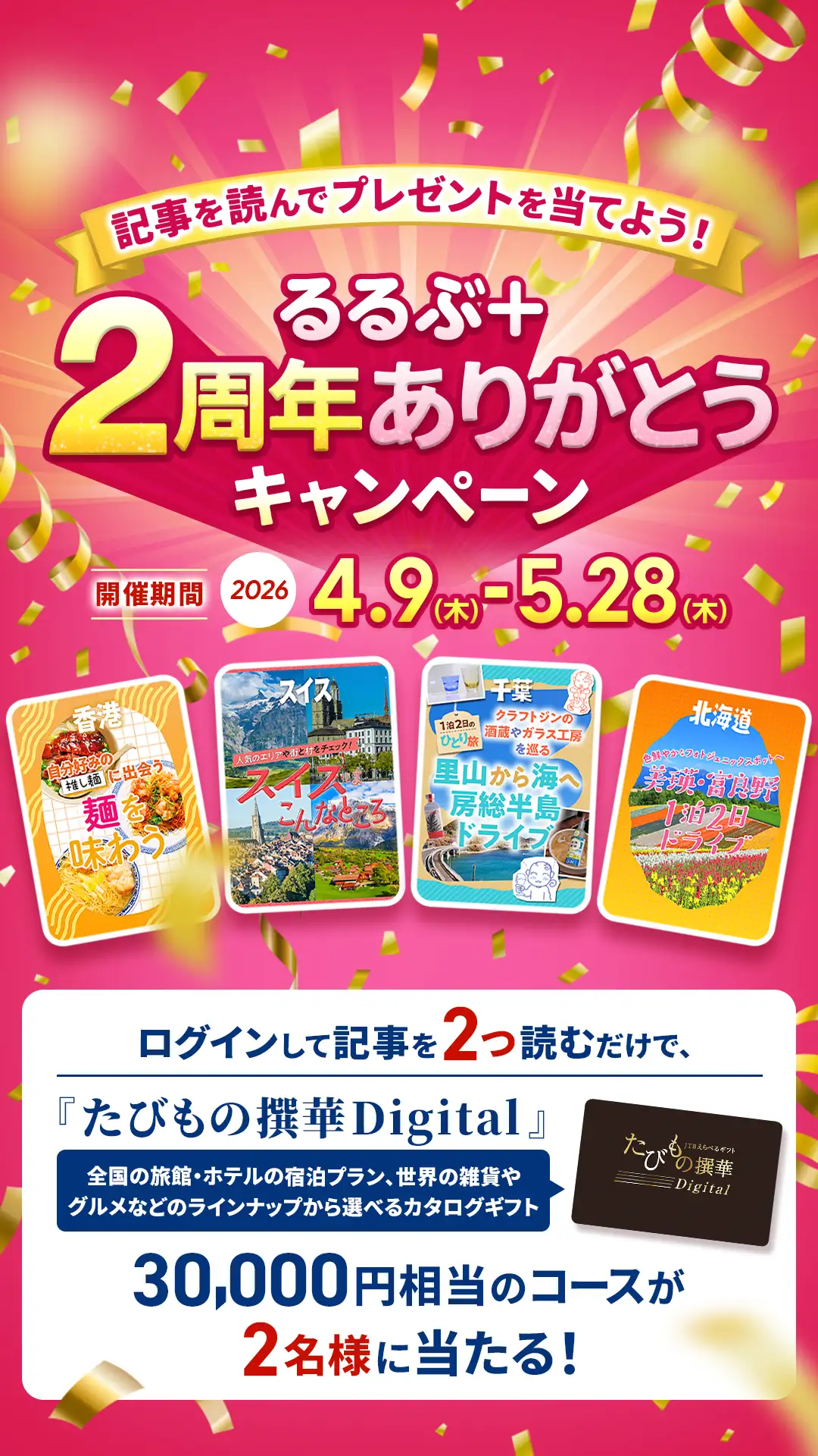 2周年を記念して、記事を2つ読むと3万円相当のカタログギフト券が2名様に当たるキャンペーンを実施中!